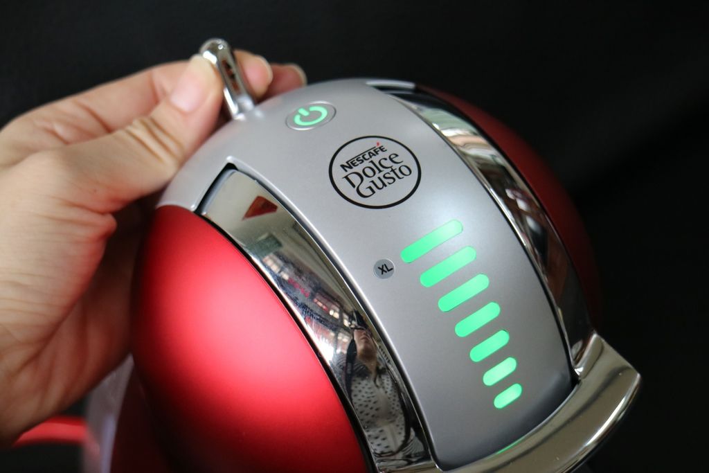 第一次使用要先裝滿水,水箱容量還滿大的,裝滿基本上可以泡四到五杯咖啡左右,之後打開電源,一開始會是紅燈等到綠燈時,就可以