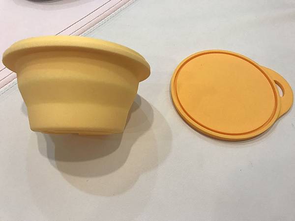 首先介紹矽膠耐熱摺疊碗,可以摺疊收納起來,所以非常省空間,外出攜帶很方便,有密合式上蓋, 吃不完也可以蓋起來冰在冰箱~