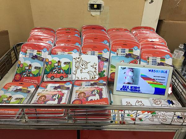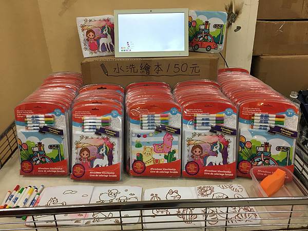 這一次還有一個攤位不是衣服,但小朋友滿需要的,水洗繪本,是畫了可以水洗洗掉的,我覺得很酷,有興趣的媽咪可以參考,現場還有影片可以看喔!
